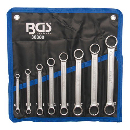 BGS Technic 9-30300 csillagkulcs készlet, egyenes, extra lapos, metrikus, 8 részes